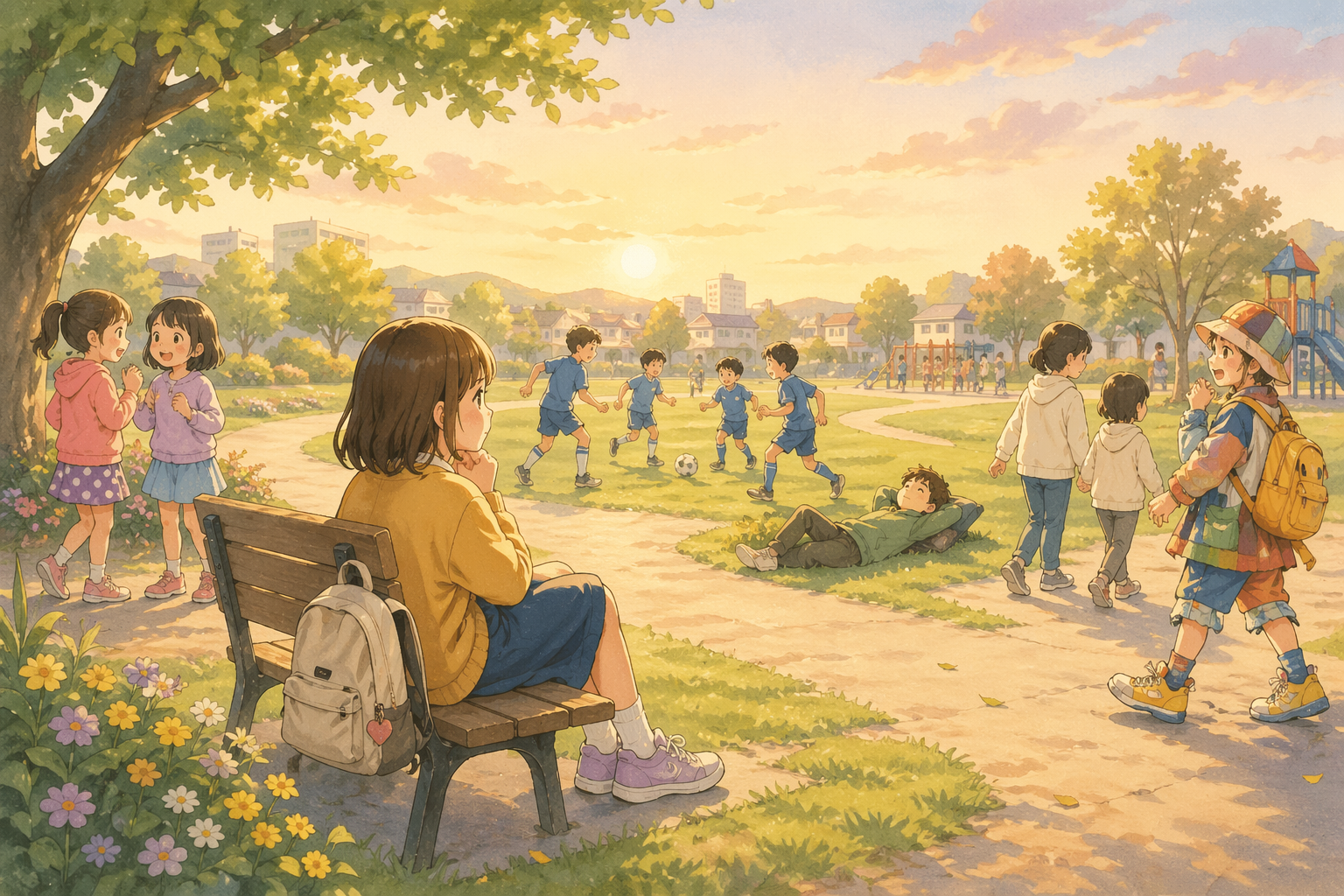 ブランコのきしむ音と、ボールを蹴る音が混ざって聞こえてくる。